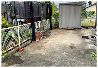 汚れの種類に応じて洗浄方法を変え、車や建物を傷つけないように配慮しながら、カーポート全体を丁寧に清掃しています。